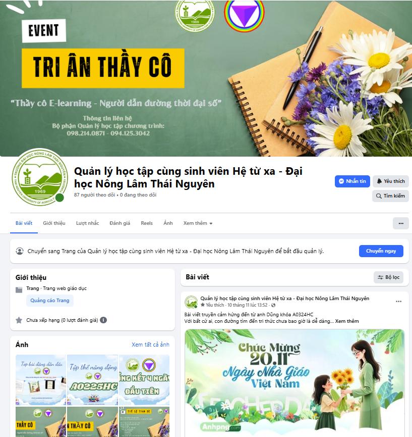 Theo dõi Fanpage “Quản lý học tập cùng sinh viên hệ từ xa – Trường Đại học Nông Lâm Thái Nguyên” https://www.facebook.com/tuaf.elearning.student để xem các bài dự thi, bình chọn và đồng hành cùng chương trình.